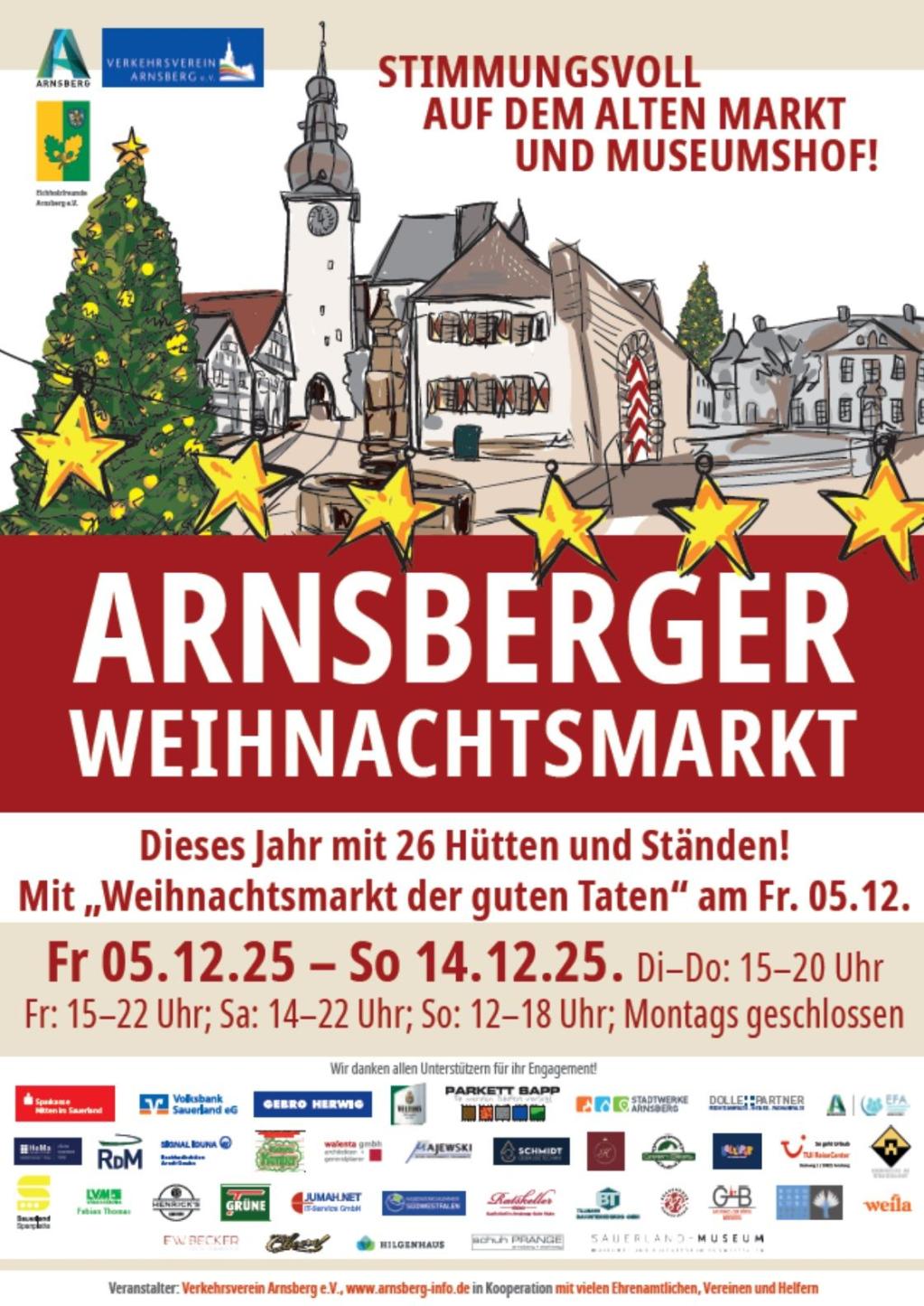 Willkommen beim Verkehrsverein Arnsberg e. V. Der Verkehrsverein Arnsberg befindet sich direkt in der Altstadt von Arnsberg. Besuchen Sie uns auf dem Neumarkt, wo kompetente Ansprechpartner für Ihren Aufenthalt in Arnsberg zur Verfügung stehen, die Ihnen einen Komplettservice touristischer Leistungen bieten. Kommen Sie vorbei, wir freuen uns auf Ihren Besuch! Wir helfen Ihnen auch per Telefon und E-Mail gern weiter – ganz gleich ob vor, während oder nach Ihrer Reise. Wir sind für Sie da!