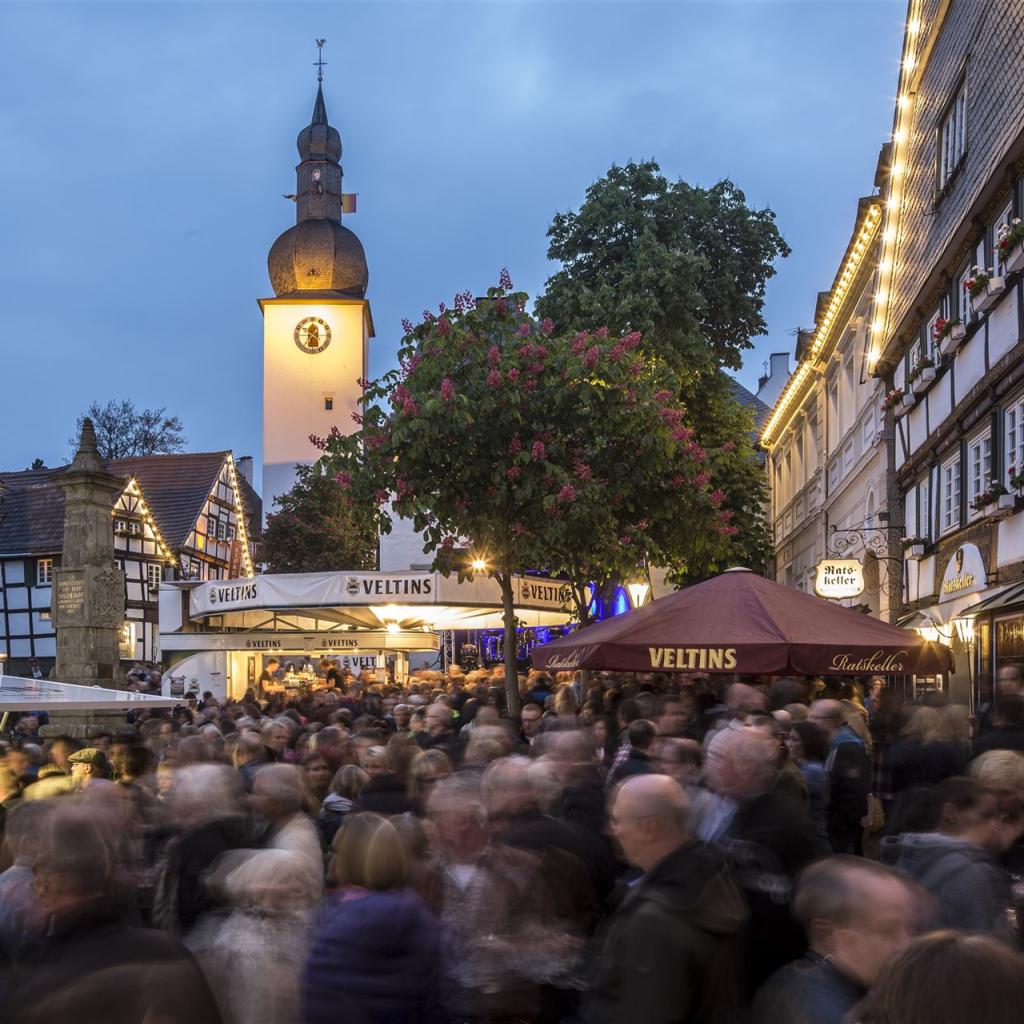 Der Dämmerschoppen in Arnsberg gehört schon immer zu einem der Höhepunkte der Arnsberger Woche. Gute Musik, nette Menschen und kühle Getränke in historischer Kulisse sind Gründe für die hohe Aufenthaltsqualität dieser Veranstaltung. Traditionell wird der Dämmerschoppen in Arnsbergs "guter Stube" am Maximilianbrunnen gefeiert. Jung und alt kommt hier zu einem "kühlen Blonden" zusammen, um die neuesten Dönekes auszutauschen oder der Musik von meist lokalen Bands zu lauschen. Natürlich sind auch unsere Gäste von außerhalb gern gesehen!