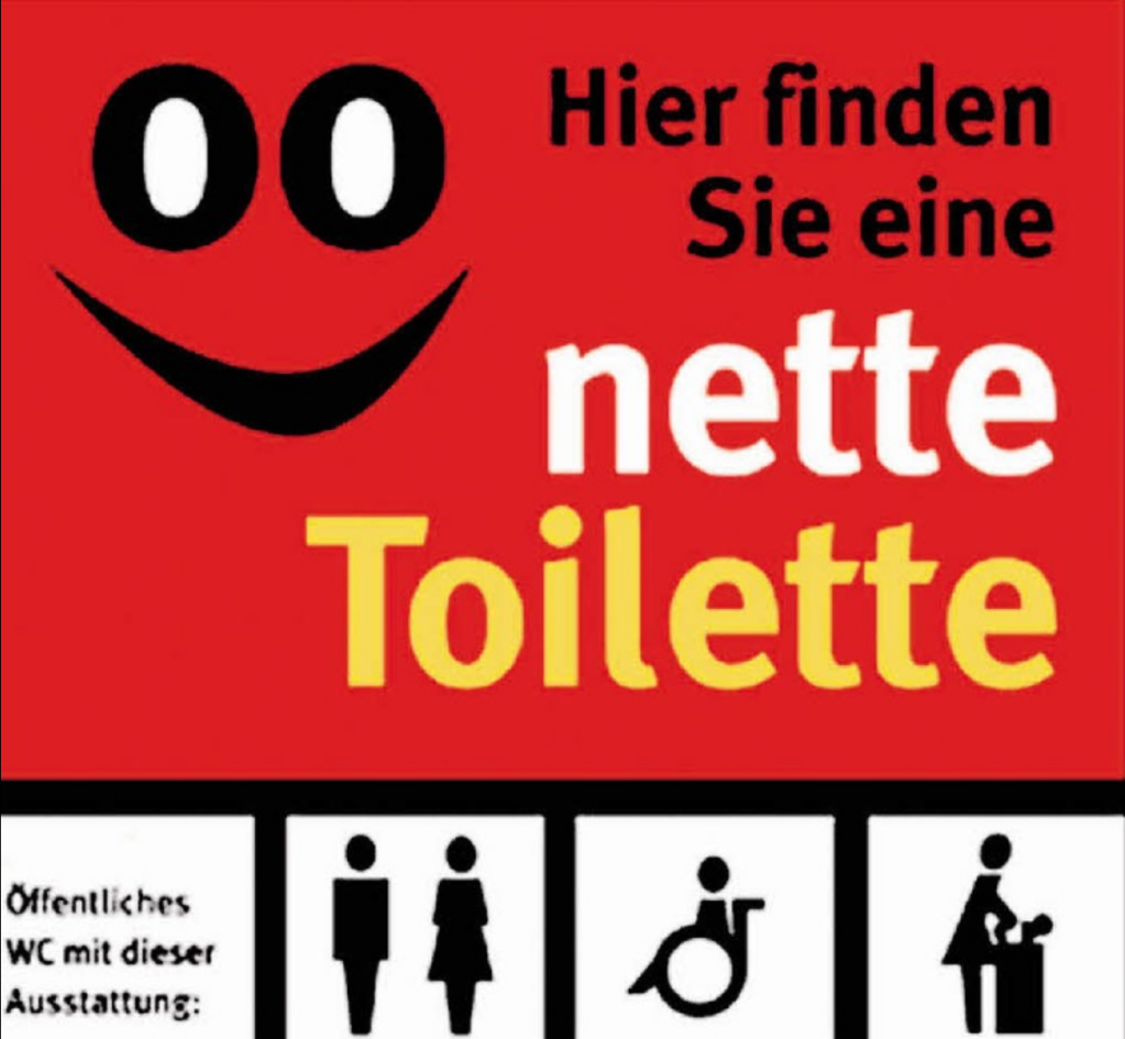Zu erkennen sind die Gastronomiebetriebe, die eine "nette Toilette" anbieten, an dem eventuell an der Tür der Gaststätte angebrachten Schild.